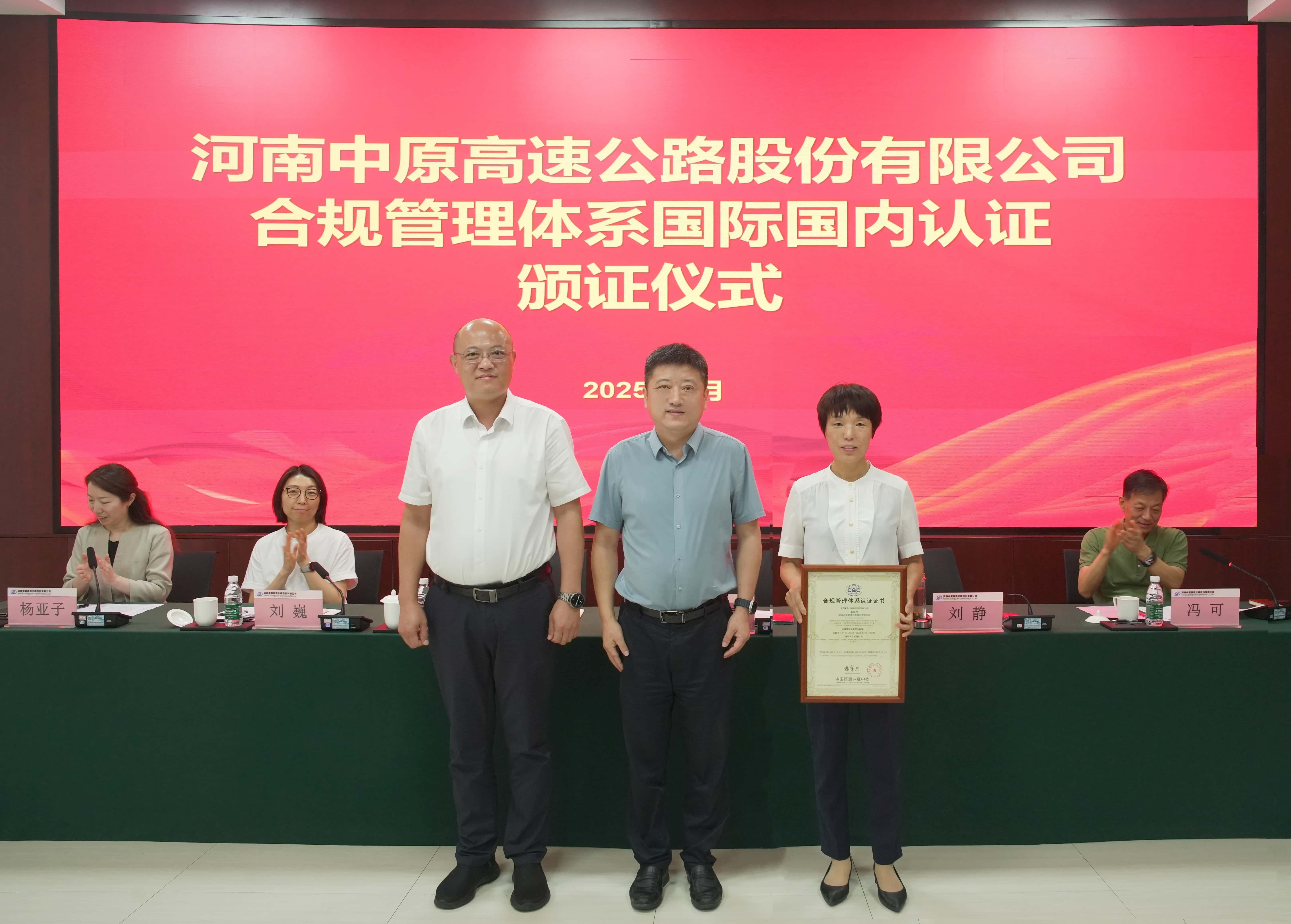 集團黨委委員、副總經(jīng)理袁凍雷參加中原高速合規(guī)“雙認證”頒證儀式并專題聽取科創(chuàng)工作匯報